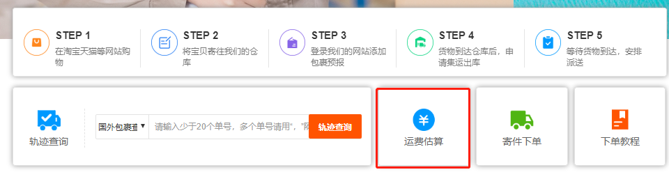 首先我們如果想在PC端進行運費估算的話我們可以在首頁找到運費估算如下圖所示